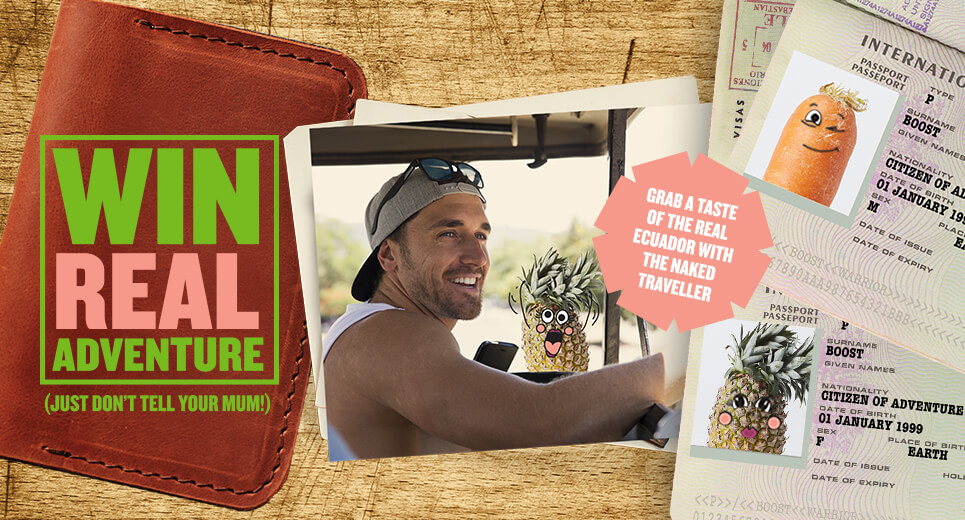 We are giving you and one of your luckiest friends the chance to experience a REAL adventure through 4 amazing locations in Ecuador! Simply grab any sized Boost and scan your Boost app or Vibe card!