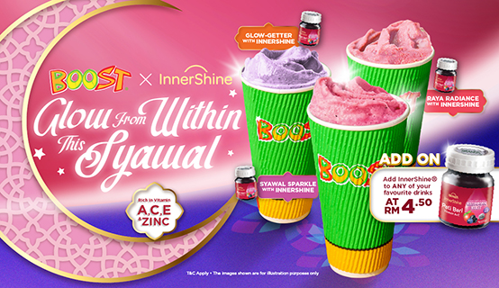 This Syawal, sip your way to radiant skin and all-around wellness with our exclusive Boost Juice X Innershine drinks.